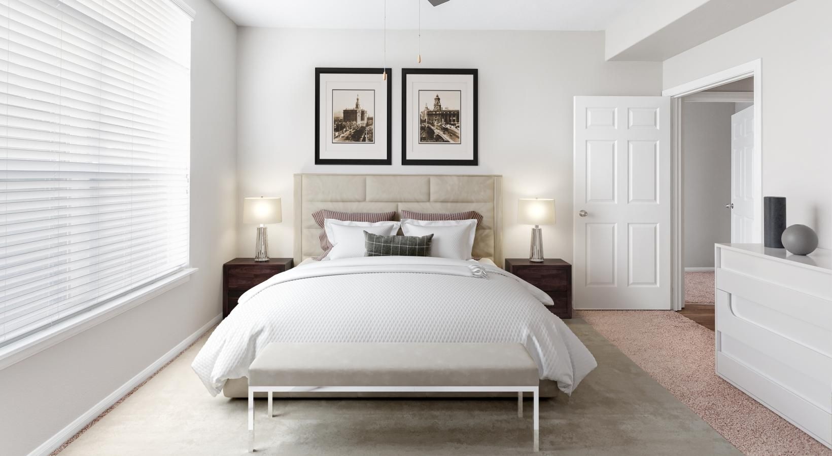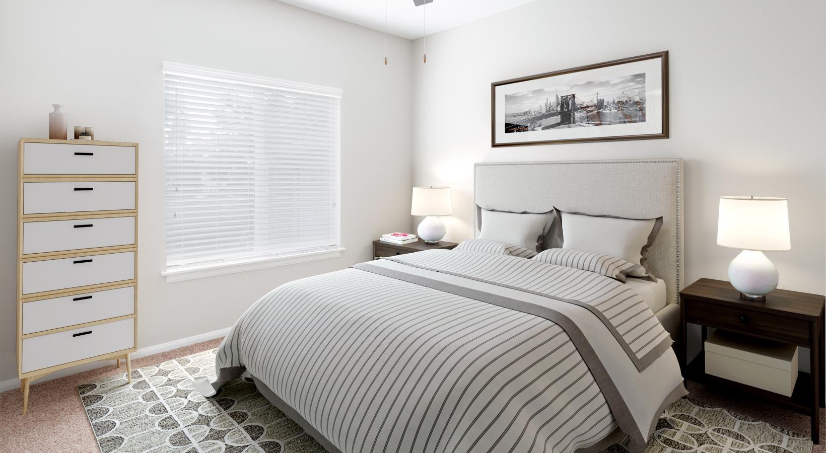 • a bedroom with a fan