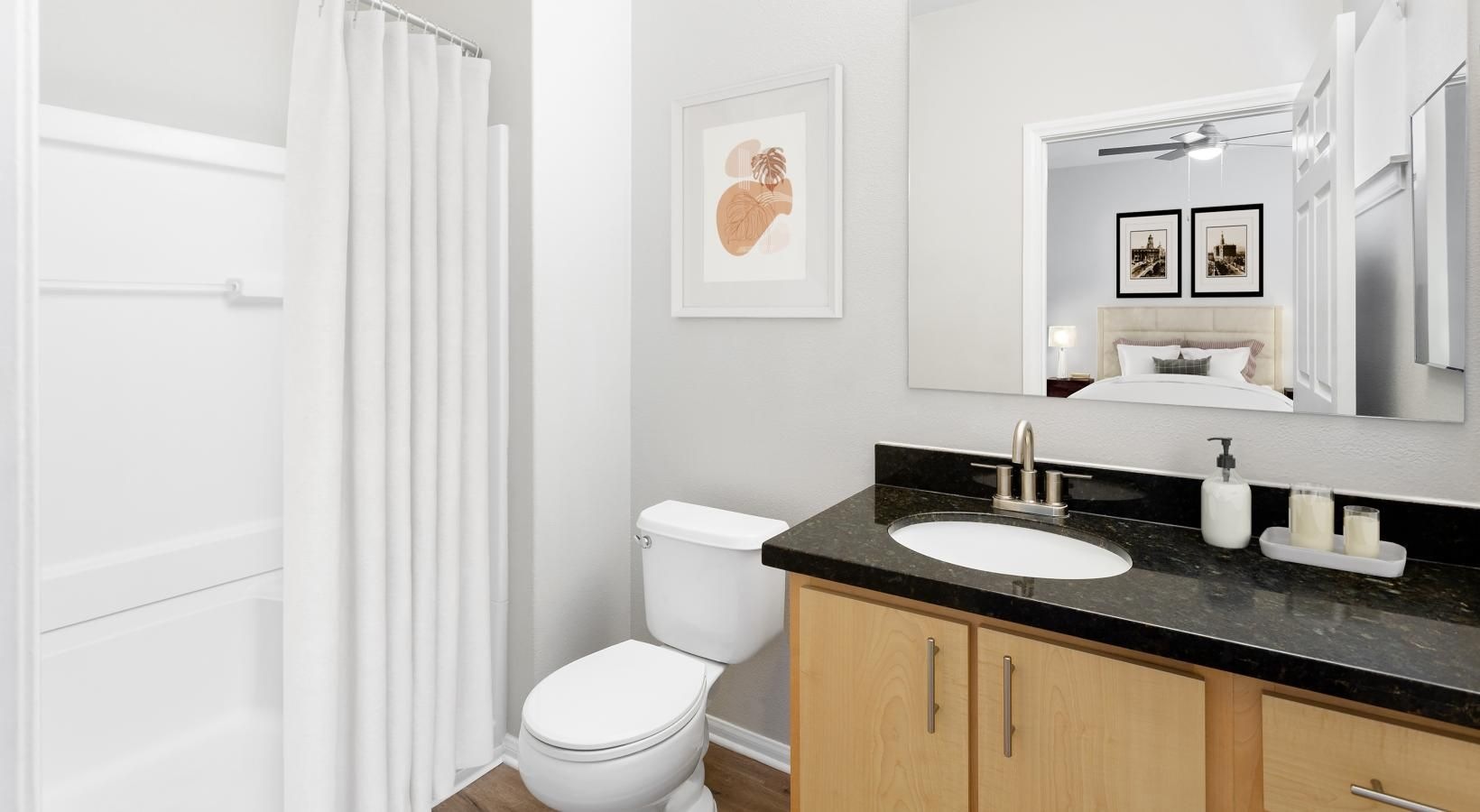 • a bathroom with a sink toilet and mirror
